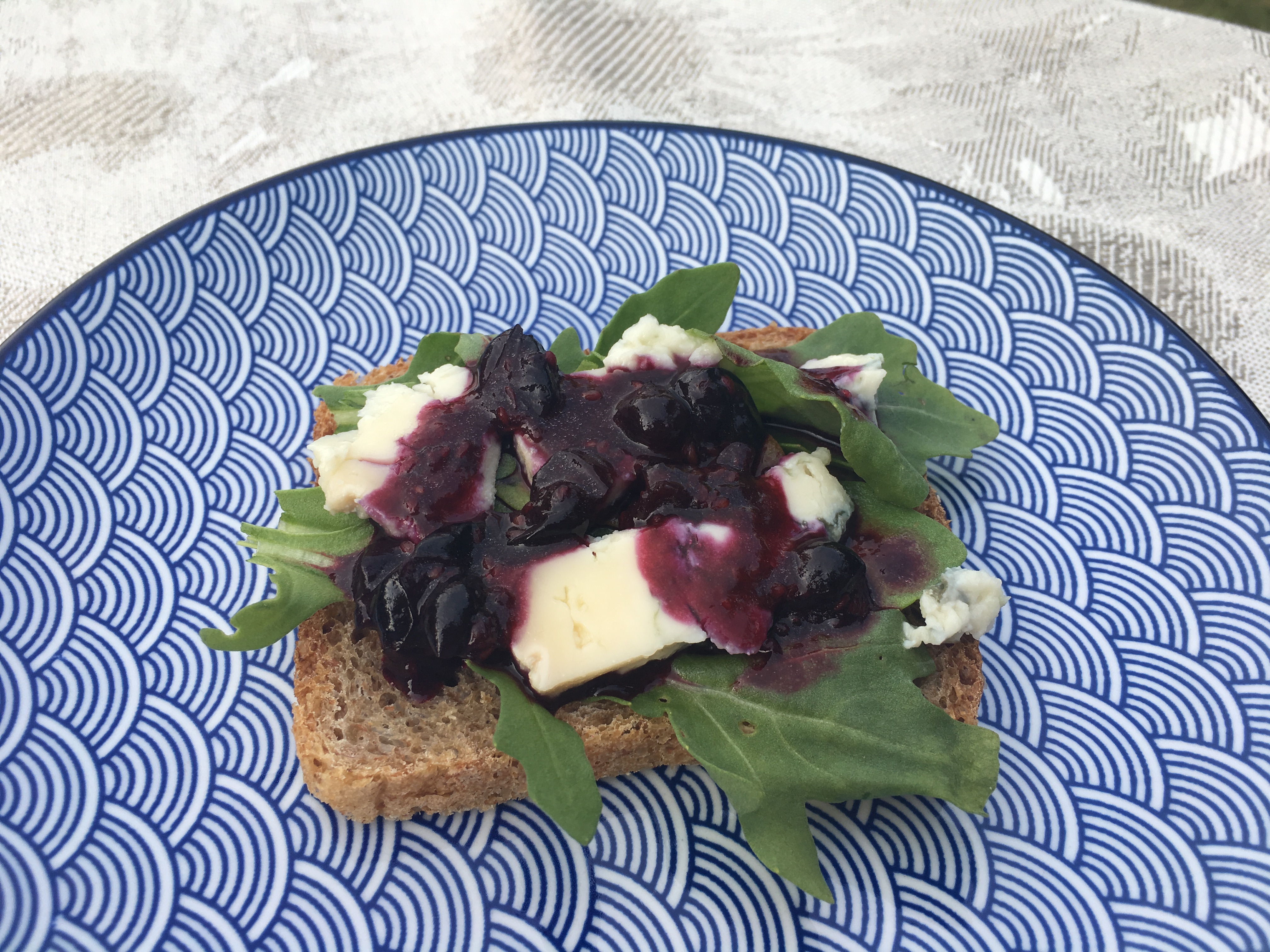 Połączenie okazało się strzałem w dziesiątkę. Serio rozbiłam bank. Tak powstały grzanki z chleba żytniego z endywią/rukolą, serem gorgonzola i sosem z czarnych porzeczek. Tak smakuje dolce vita 🙂
